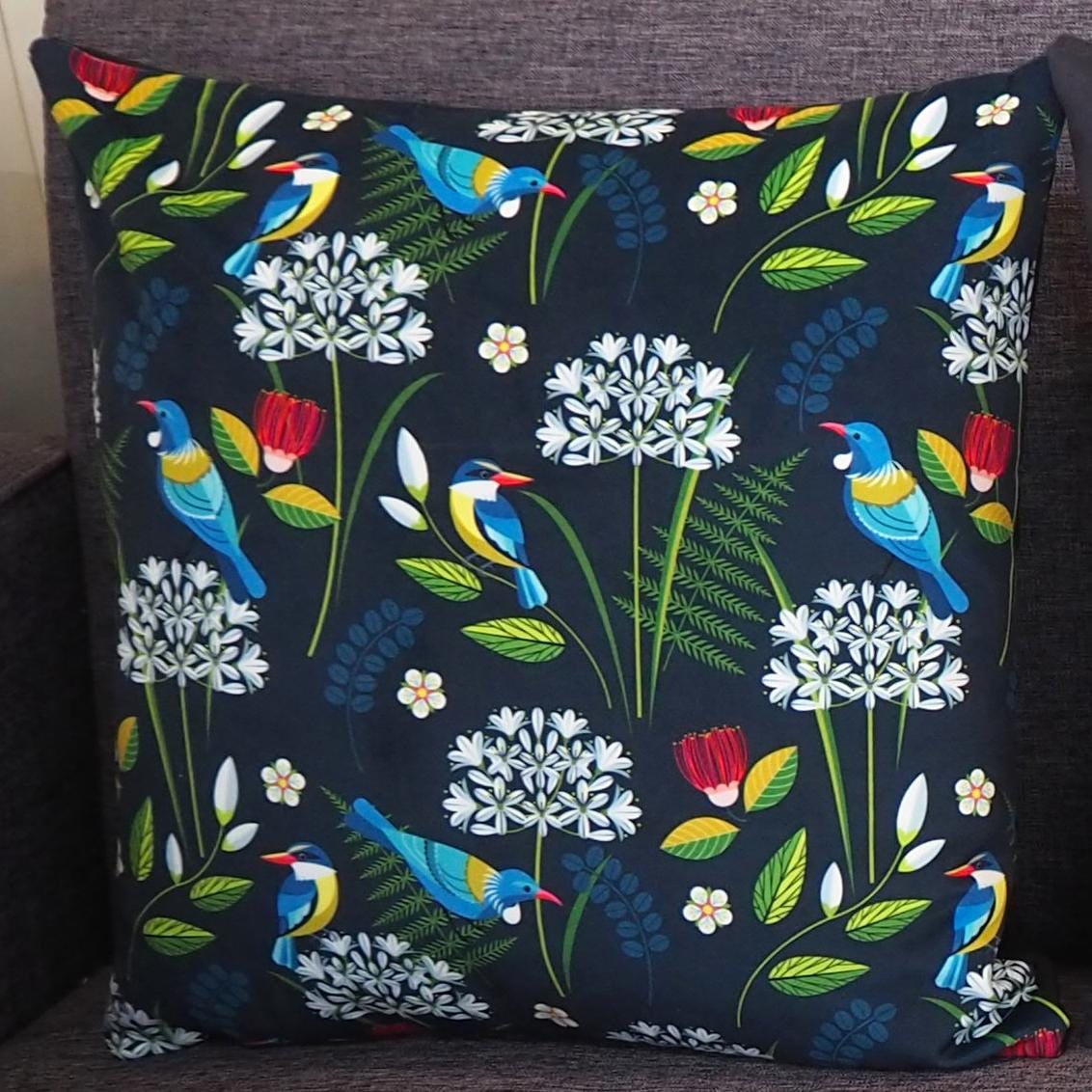 New Zealand, Kotare, Tui, Agapanthus, cushion cover, C9